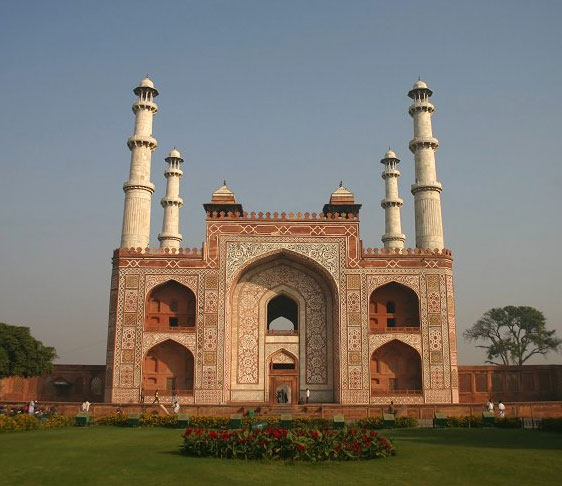 4 kilometers from Agra is Akbar’s tomb at Sikandra which is an excellent example of assimilation of different styles of architecture and it represents a significant departure from the earlier Mughal buildings. The tomb carries the characteristic flavor of the airy tiered pavilions of the Agra Fort and Fatehpur Sikri.